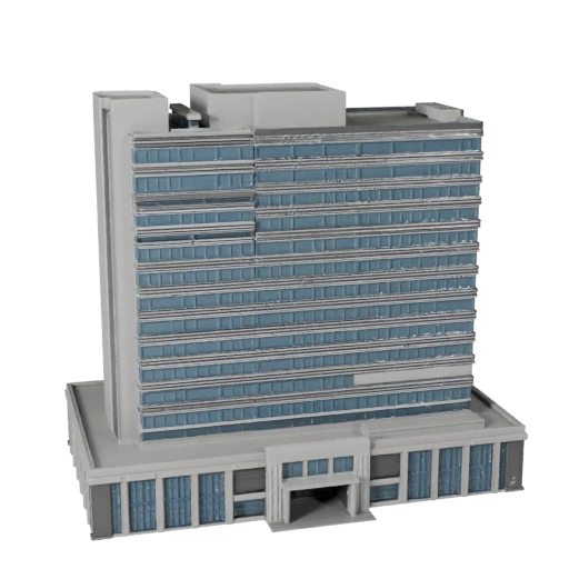 Низкополигональная версия коммерческого офисного комплекса лучше всего подходит для разработки игр, архитектурной визуализации, VR, AR, XR. Она построена вокруг пропорций коммерческого офисного здания, читаемого внешнего масштаба и четкой архитектурной роли. Используйте ее для архитектурной визуализации, сцен в реальном времени, плановых видов, физических макетов или образовательных визуализаций, когда вариант соответствует потребностям вашего проекта.