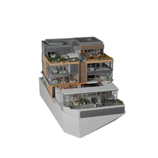 Офисное здание коворкинга — это стилизованная 3D-модель архитектуры для разработки игр, архитектурной визуализации, VR, AR, XR. Дизайн представляет собой гибкие офисные помещения, открытое лобби, общие террасы, кафе на первом этаже, широкое остекление, навес без вывески и непринужденную планировку рабочего пространства. Материалы представлены стеклом, металлическими рамами, теплыми древесными акцентами, бетонными полами, озелененными краями крыши и четкими зонами материалов, обращенных внутрь, а внешние зоны делают стены, окна, края крыши, отделку, контакт с землей и входные зоны легко читаемыми. Используйте привлекательные пропорции средней этажности с оживленным общественным первым этажом. Стилизованный вариант сохраняет читаемость архитектурной идентичности благодаря упрощенным формам, четким цветовым блокам и преувеличенным, но функциональным пропорциям. Ресурс подходит для архитектурных превью, оформления окружения, городских планировок, сцен недвижимости, образовательных визуализаций, концептуального планирования и библиотек моделей, которым нужен конкретный тип здания, а не общий блок. Он дает художникам четкое представление о массе, назначении материалов, внешнем масштабе и вероятном соответствии проекту, прежде чем они поместят модель в сцену.