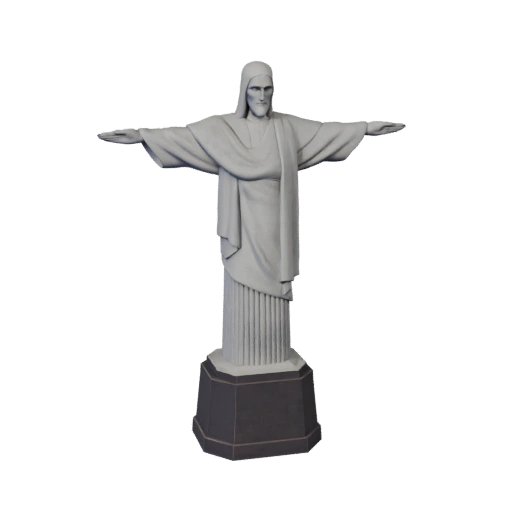 Modelo 3D Cristo Redentor listo para Unreal Engine para Desarrollo de Videojuegos, con geometría low_poly, piedra PBR en mosaico, hormigón, metal y detalle de estructura de monumento reconocible.