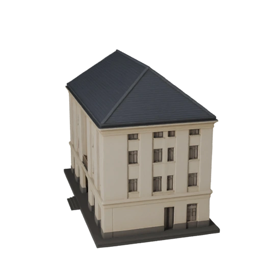 Les détails distinctifs comprennent un volume clair, une hiérarchie d'entrée lisible, un rythme de fenêtres, une forme de toit, une profondeur de mur, des modules de façade, des zones de matériaux et des repères d'échelle extérieurs pratiques. Les matériaux utilisent des surfaces sculptées optimisées pour l'impression, de sorte que les murs, les ouvertures, les bords du toit, les moulures, le contact au sol et la hiérarchie d'entrée restent compréhensibles depuis les vues extérieures.