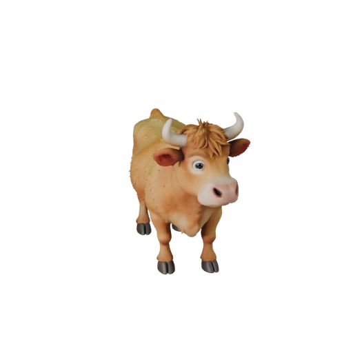 Asset de Vaca de Desenho Animado focado em silhueta de chifre ou galhada, Baixo Poli, pbr fur e preparação de rigging em tempo real para Unity.