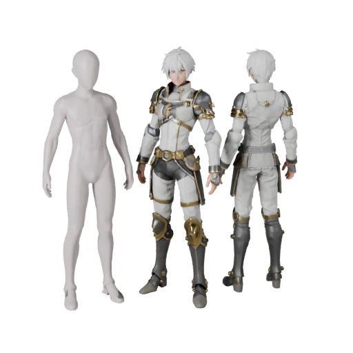 O Modelo de Personagem Mago Blindado de Anime - Articulado é projetado para desenvolvimento de jogos. Este conceito de personagem foca em uma silhueta legível, estrutura amigável para produção e uso em tempo real em projetos de Unreal Engine ou Unity