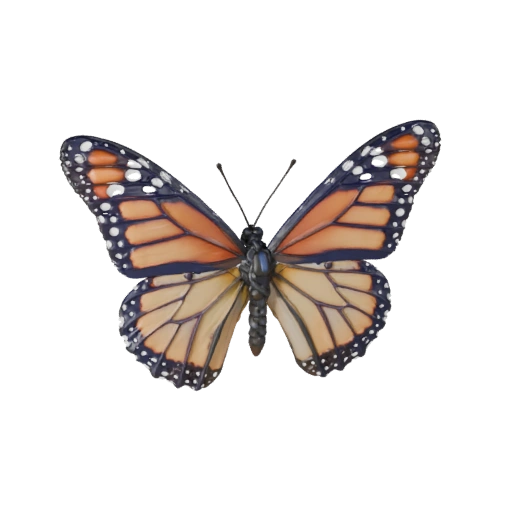 Ассет бабочки монарх для Unity с акцентом на сегментированные части тела, низкополигональный стиль, стилизованный экзоскелет и подготовку к риггингу в реальном времени для Unity.