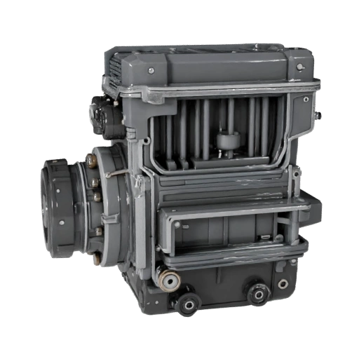 Реалистичная 3D модель блока двигателя для кино / анимации / VFX со средней полигональной геометрией и PBR материалами для твердых поверхностей с четким определением краев, разделением металлов и читаемостью компонентов крупным планом.