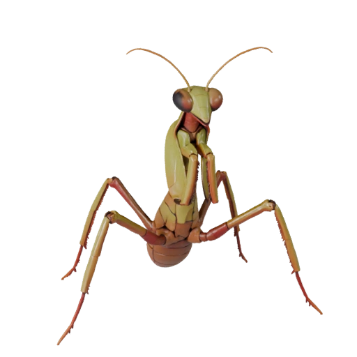 Ассет богомола для Blender, сфокусированный на размещении усиков, средний поли, стилизованный экзоскелет и подготовка конвейера анимации для Blender.