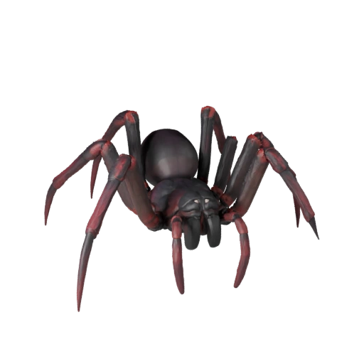 Ассет Unity с черной вдовой пауком, ориентированный на сегментированные части тела, низкополигональный, стилизованный экзоскелет и подготовка к риггингу в реальном времени для Unity.