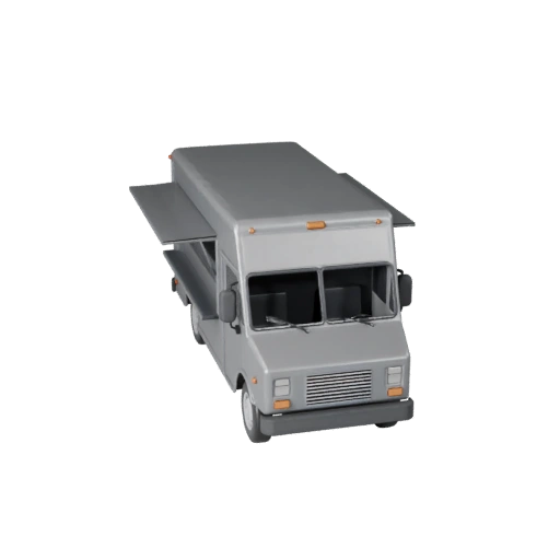 3D модель фудтрака, готовая для Unreal Engine, для разработки игр с низкополигональной геометрией и PBR краской для металла, стекла, резины и внутренней отделки с чистым разделением материалов.