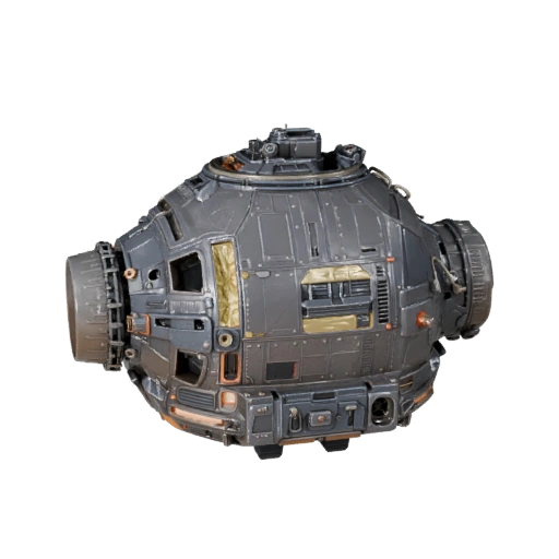 3D модель капсулы экипажа, готовая для Blender, для кино / анимации / VFX, со средней полигональной геометрией и PBR металлическими панелями, элементами термоодеяла, светящимися акцентами и модульным разделением аэрокосмических материалов.