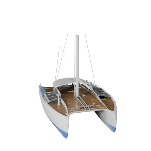 Готовая для Unreal 3D модель катамарана для разработки игр с низкополигональной геометрией и PBR покрытием корпуса, металлическими деталями, веревкой или материалами палубы, стеклом и текстурой водного транспорта.