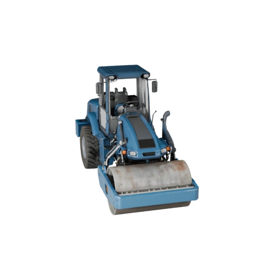 3D модель катка, готовая для Unity, для разработки игр с низкополигональной геометрией и окрашенным металлом PBR, гидравлическими компонентами, резиной, стеклом и промышленным износом.