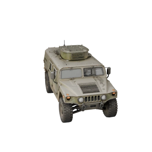 3D модель хамви, готовая для блендера, для кино / анимации / VFX со средней полигональностью и PBR бронированным металлом, резиной, стеклом и изношенной поверхностью.