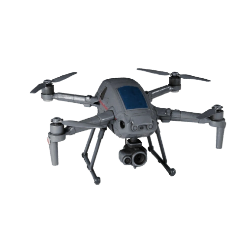 3D модель квадрокоптера дрона, готовая для Unity, для разработки игр с низкополигональной геометрией и окрашенным PBR фюзеляжем из металла или композита, стеклом кабины, резиновым шасси и детализацией панелей.