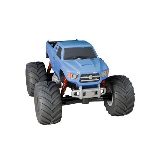 3D модель монстр-трака, готовая для Blender, для кино / анимации / VFX, со средней полигональной геометрией и PBR-покраской металла, стекла, резины и элементов интерьера с чистым разделением материалов.