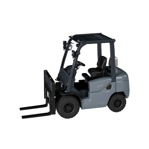 Готовая для Unreal 3D модель погрузчика для разработки игр с низкополигональной геометрией и PBR-покраской металла, стекла, резины и отделки салона с чистым разделением материалов.