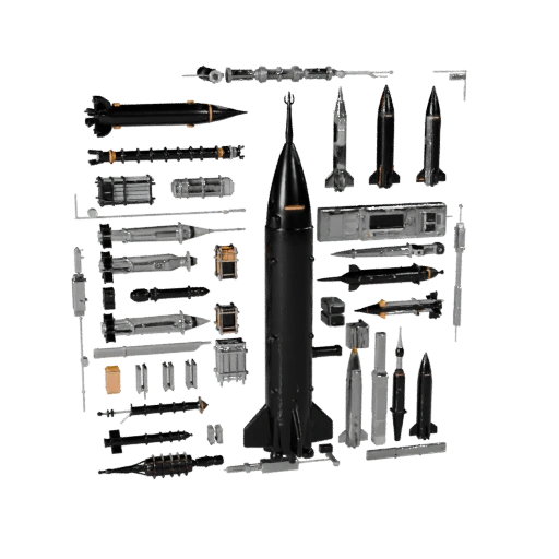 Реалистичная 3D модель ракеты-носителя для кино / анимации / VFX со средней полигональностью и PBR металлическими панелями, элементами термоодеяла, светящимися акцентами и модульной аэрокосмической разбивкой материалов.