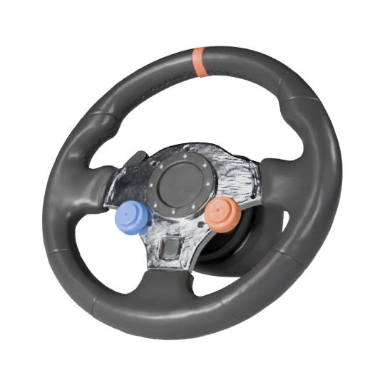 3D модель руля, готовая для Unity, для разработки игр с низкополигональной геометрией и PBR материалами для твердых поверхностей с четкими краями, металлическим разделением и читаемостью компонентов вблизи.