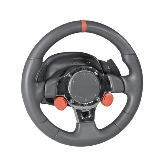 3D модель руля, готовая для Unreal Engine, для разработки игр с низкополигональной геометрией и PBR материалами для твердых поверхностей с четким определением краев, металлическим разделением и читаемостью компонентов крупным планом.