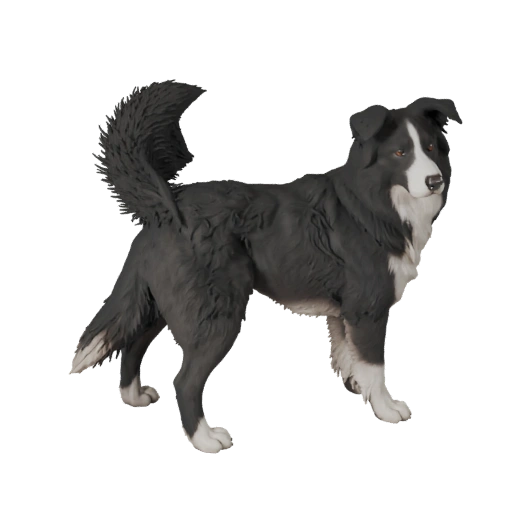 Ресурс Blender с 3D моделью бордер-колли, ориентированный на направление шерсти, средний поли, PBR мех и подготовку конвейера анимации для Blender.