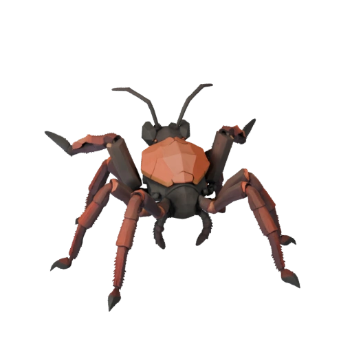 Ассет тарантула для Unity с акцентом на разделение торакса, низкополигональный, стилизованный экзоскелет и подготовка к риггингу в реальном времени для Unity.