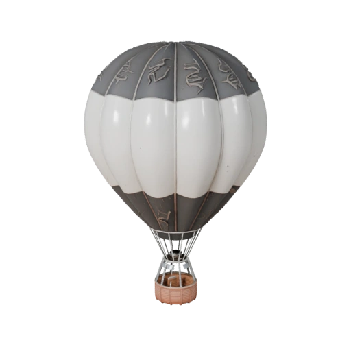 3D модель воздушного шара, готовая для Blender, для кино / анимации / VFX со средней полигональной геометрией и окрашенным PBR металлом или композитом фюзеляжа, стеклом кабины, резиновым шасси и деталями разделения панелей.