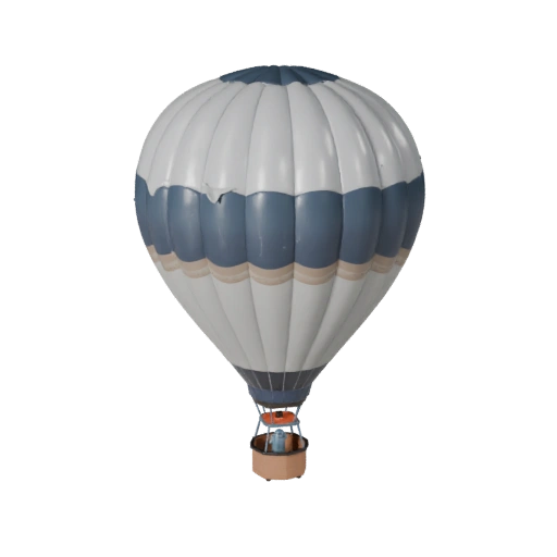 3D модель воздушного шара, готовая для Unreal Engine, для разработки игр с низкополигональной геометрией и окрашенной PBR металлической или композитной обшивкой, стеклом кабины, резиновым шасси и деталями разделения панелей.