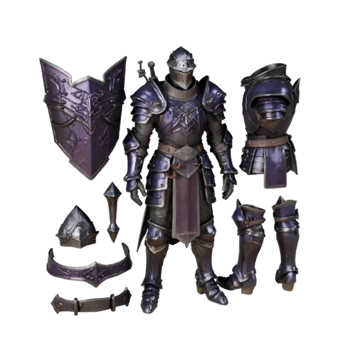 Фэнтези бронированный персонаж нпс Рыцарь с ригом разработан для разработки игр. Этот концепт персонажа фокусируется на читаемом силуэте, производственно-дружественной структуре и использовании в реальном времени в проектах Unreal Engine или Unity