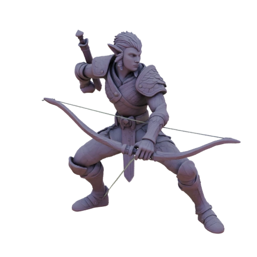 Фэнтези Эльф Рейнджер Миниатюра STL - Оборонительная разработана для DnD и настольных игр. Эта концепция для печати использует читаемый силуэт, скульптурную детализацию и композицию, готовую к встрече, для печати смолой и коллекционной росписи