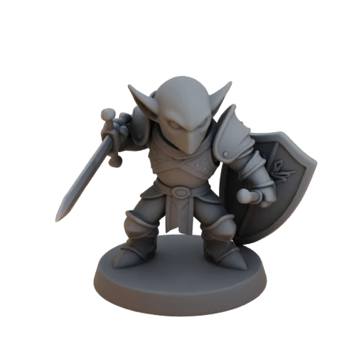 Фэнтези Гоблин Паладин Миниатюра STL разработана для DnD и настольных игр. Этот концепт для печати использует читаемый силуэт, детализированную скульптуру и композицию, готовую к встрече, для печати смолой и коллекционной росписи