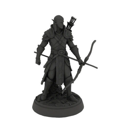 Фэнтези миниатюра темного эльфа рейнджера STL - Страж разработана для DnD и настольных игр. Этот концепт для печати использует читаемый силуэт, детализированную скульптуру и композицию, готовую к встрече, для печати смолой и коллекционной покраски