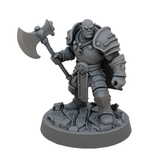 Фэнтези Орок Воин Миниатюра STL разработана для DnD и настольных игр. Этот концепт для печати использует читаемый силуэт, скульптурную детализацию и композицию, готовую к встрече, для печати смолой и коллекционной росписи