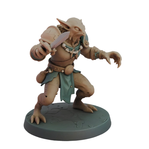 Фэнтези Золотой Гребень Гоблин Лучник Миниатюра STL - Когтистая разработана для DnD и настольные игры. Эта концепция для печати использует читаемый силуэт, скульптурную детализацию и композицию, готовую к встрече, для печати смолой и коллекционной росписи