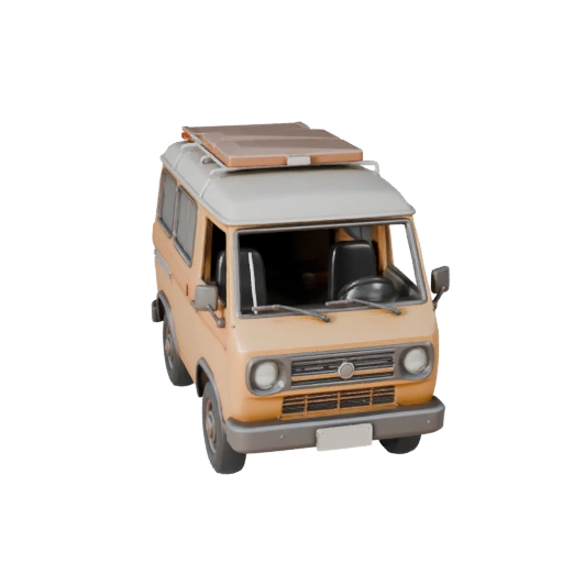 Готовый к игре актив ретро фургон с практичной структурой для использования в производстве в реальном времени.