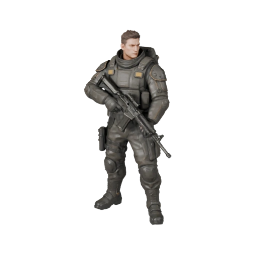 Модель персонажа солдата научной фантастики - с ригом разработана для разработки игр. Эта концепция персонажа фокусируется на читаемом силуэте, производственно-дружественной структуре и использовании в реальном времени в проектах Unreal Engine или Unity