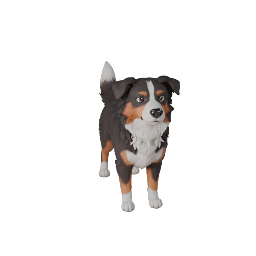 Мультяшный ассет австралийской овчарки, сфокусированный на плоскостях морды, низкополигональной модели, PBR мехе и подготовке к риггингу в реальном времени для Unity.