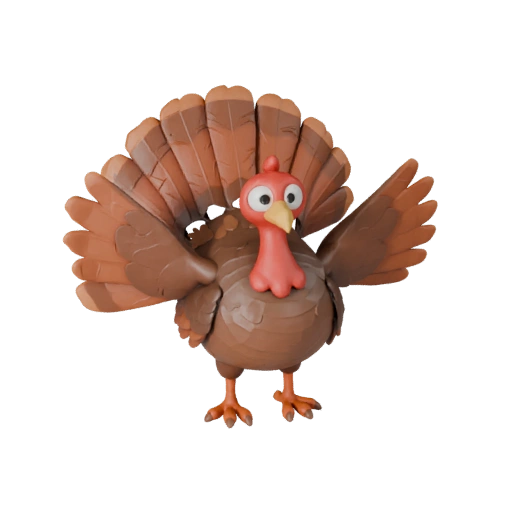 Мультяшный ассет индейки, сфокусированный на детализации хвоста, низкополигональной сетке, pbr перьях и подготовке к риггингу в реальном времени для Unity.