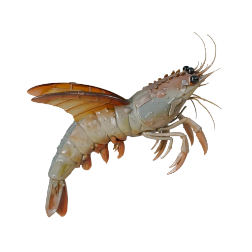 Мультяшный ассет креветки с акцентом на мембраны плавников, низкополигональный, pbr шкалы и подготовка к риггингу в реальном времени для Unity.