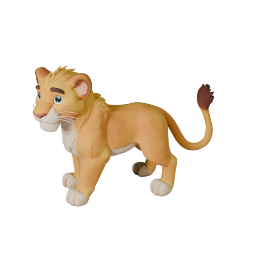 Мультяшный ассет львицы с акцентом на подушечки усов, низкополигональный, PBR мех, и подготовка к риггингу в реальном времени для Unity.