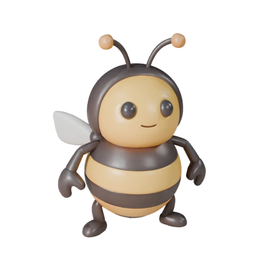 Мультяшный ассет медоносной пчелы с акцентом на размещение антенн, низкополигональный, стилизованный экзоскелет и подготовка к риггингу в реальном времени для Unity.