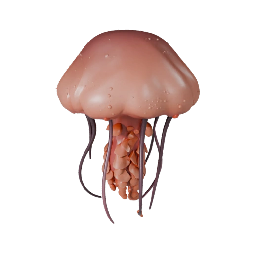Мультяшный ассет медузы с акцентом на мембраны плавников, низкополигональный, pbr шкалы и подготовка к риггингу в реальном времени для Unity.