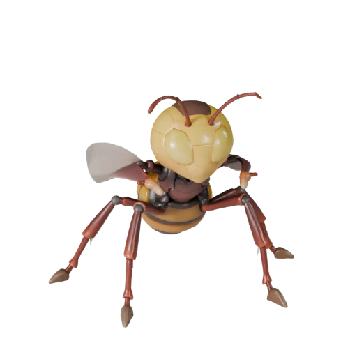 Мультяшный ассет осы с акцентом на размещение антенн, низкополигональный, стилизованный экзоскелет и подготовка к риггингу в реальном времени для Unity.