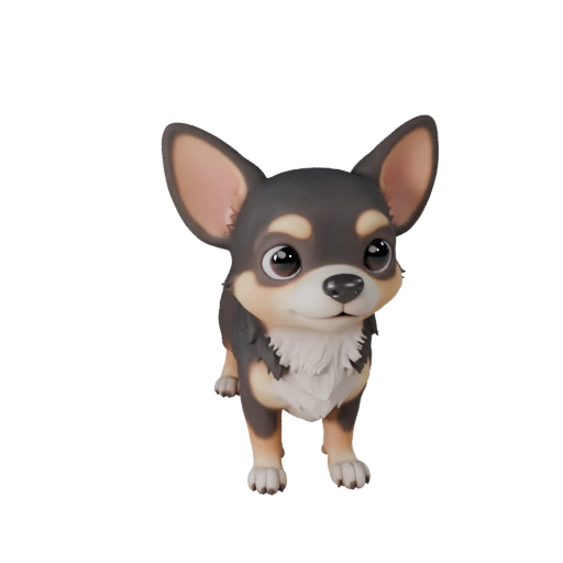 Ассет мультяшной собаки чихуахуа с акцентом на направление шерсти, низкополигональный, PBR мех и подготовку к риггингу в реальном времени для Unity.