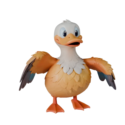 Ассет мультяшной утки с акцентом на направление перьев, низкополигональную модель, pbr перья и подготовку к риггингу в реальном времени для Unity.