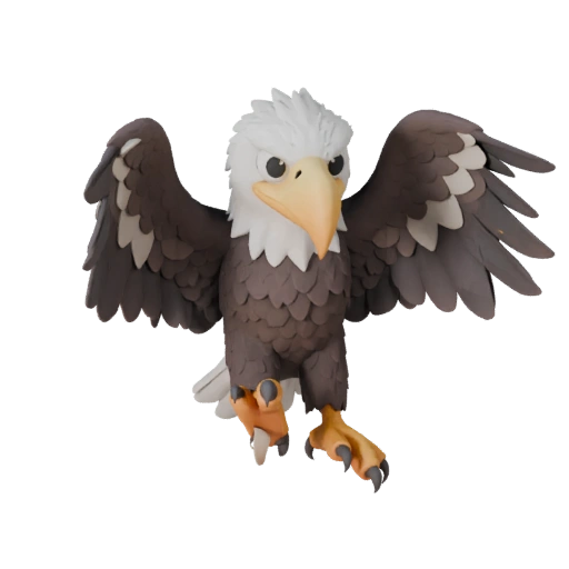 Мультяшный ассет белоголового орлана с акцентом на детализацию хвоста, низкополигональный, pbr перья и подготовка к риггингу в реальном времени для Unity.