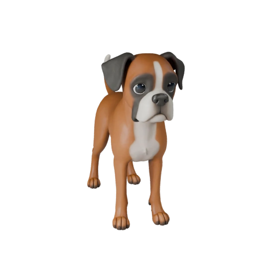 Мультяшный боксер ассет с акцентом на плоскости морды, низкополигональный, PBR мех, и подготовка к риггингу в реальном времени для Unity.