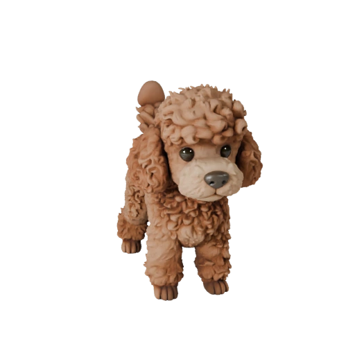 Ассет мультяшный пудель собака с акцентом на плоскости морды, низкополигональный, PBR мех и подготовка к риггингу в реальном времени для Unity.