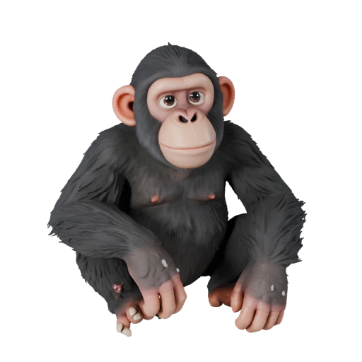 Мультяшный ассет шимпанзе с акцентом на структуру рук и ног, низкополигональный, PBR мех, и подготовка к риггингу в реальном времени для Unity.