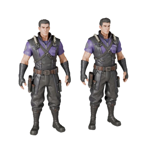 Научная фантастика NPC Офицер Персонаж Модель - С Ригом разработана для разработки игр. Этот концепт персонажа фокусируется на читаемом силуэте, дружественной к производству структуре и использовании в реальном времени в проектах Unreal Engine или Unity
