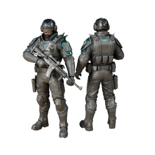 Научная фантастика ВРАЖЕСКИЙ Солдат Персонаж Модель - с ригом разработана для разработки игр. Эта концепция персонажа фокусируется на читаемом силуэте, производственно-дружественной структуре и использовании в реальном времени в проектах Unreal Engine или Unity