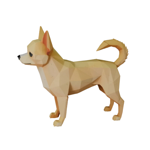 Низкополигональный ресурс чихуахуа собаки с акцентом на плоскости морды, низкополигональный, PBR мех и подготовка к риггингу в реальном времени для Unity.