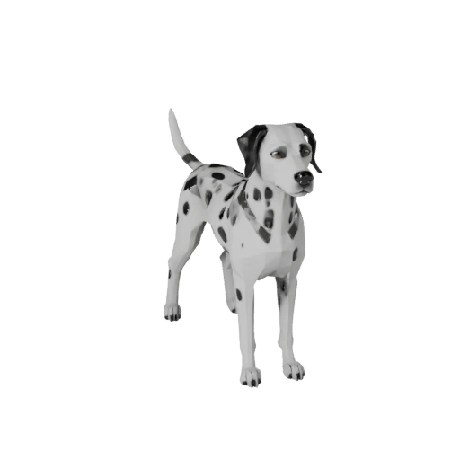 Низкополигональный ресурс далматинской собаки, ориентированный на ритм ног, низкополигональность, PBR мех и подготовку к риггингу в реальном времени для Unity.